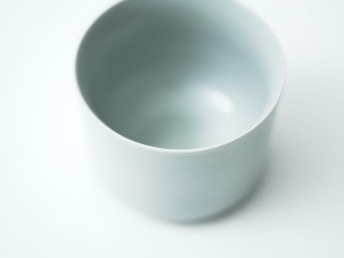 鉄分を含む土の上に、無色透明の釉薬を掛け、窯の中で変化することで淡いブルーグレーの色を纏っています。