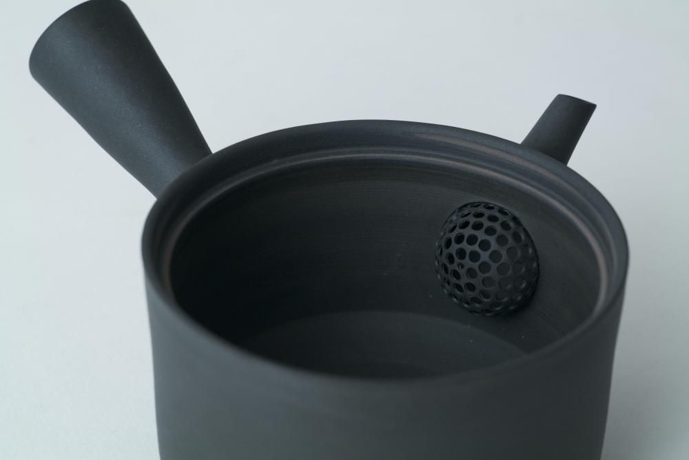 陶土は鉄分を多く含むもので、昔から急須用に配合されている土です。釉薬をかけずに鉄分が黒くなる方法で焼しめています。特に内側に釉薬をかけないことで、その表面の細かな凹凸が、お茶の渋みを程よく緩和し、まろやかで美味しく変化させます。